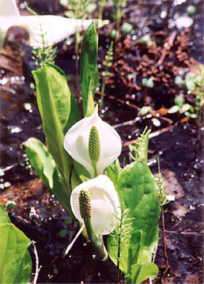 水芭蕉(みずばしょう):初夏の風物詩、湿原に群れ咲く雪白の花