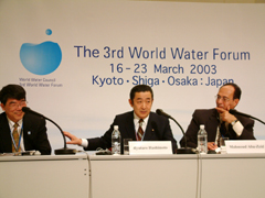 3月16日から23日まで琵琶湖・淀川水系を中心に、"第3回世界水フォーラム"が開催されました。主会場は京都市、大阪市、大津市の3会場、182の国・地域から24,000人を超える人々が参加した大会議でした。ちょうど会議の最中にイラクに対するアメリカ、イギリスの戦闘がはじまり、その影響を心配しましたが、お陰で海外からも6,000人を越える参加者があり、主催者としては嬉しい限りでした。