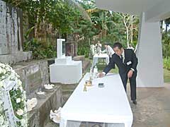 会議に参加している方々のご了解を得て、途中抜けさせていただき、ぺリリュウ島に建立されている西太平洋戦没者の碑に参拝させていただきました。この慰霊碑はぺリリュウ島の最南端に位置し、沖合いにもう一つの激戦地であるアンガウル島を望むことが出来ます。ジャングルの中をしばらく車で走ると突然海が見え、きれいに掃除していただいている慰霊碑が現れます。周辺は公園として整備されています。