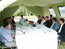 会議の終了後、私たちはモンゴルの大自然を本当に堪能させていただきました。 エンフバヤル首相が私たち夫婦のために首相公邸で昼食会を開いてくださったのですが、その公邸自体、ウランバートル市のすぐ郊外ですが国立公園の一角にあり、モンゴル独特のゲルが建てられ、馬の群れが遊び、馬乳を搾ったり、子供たちが裸馬を走らせたり、およそ日本では考えられないスケールです。