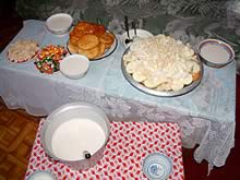 遊牧民ゲル内にて歓迎の食事 |