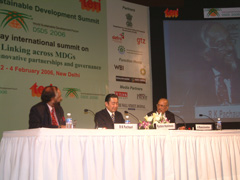 結び) 最後に、この度の、タタ・エネルギー研究所主催「デリー持続可能な開発サミット」におきまして、ご尽力いただきましたエネルギー資源研究所のパチョーリ事務局長に対しましてこの場をお借りして一言御礼を申し上げ、私の話を終らせていただきます。 ご清聴有難うございました。 |