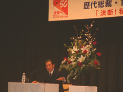 ですからスタンフォードでアマコスト氏、ペリー氏がおられましたから、私は「総理大臣としてたった一つ良い事をしたと思う。」と言った。それは96年クリントン大統領が訪日されたとき、大統領との間に日米安全保障条約共同声明を発出することが出来た。この中には日米防衛協力の指針を新しく作る、そして全く外の事にはふれることの無かった日本が周辺事態に対応する、あるいはテロ対策等国際社会でうごきうるベースをこの共同宣言で作る事が出来ました。 |
