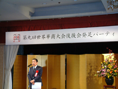 組織委員会は2007年を「日本中華年」と名付け、世界華商大会に加えて様々なイベントを行う予定ですが、我々もホスト国を代表し、この年にわが国を訪れる全世界の華僑・華人の皆様を歓待し、我々日本人との交流を積極的に促進してまいりたいと存じます。